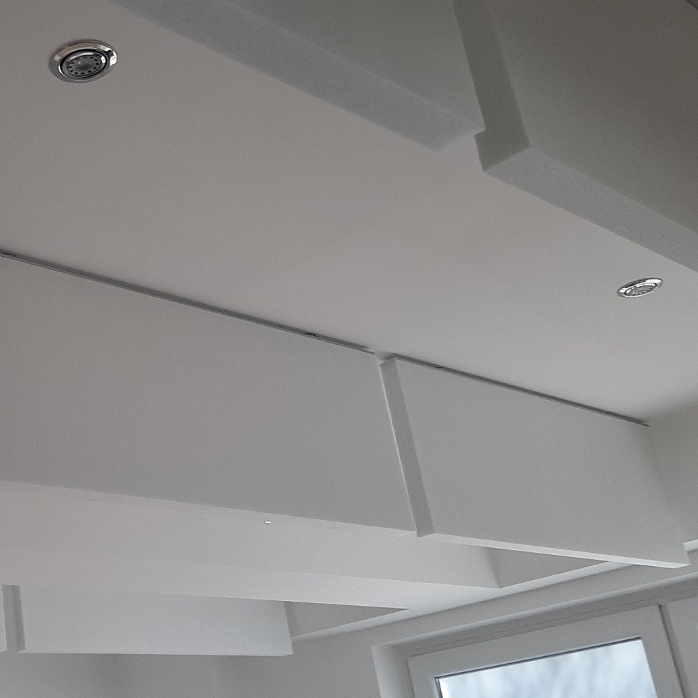 Als Alternative zu einem flächigen Element das waagerecht unter der Decke hängt. Baffeln werden in der Regel, im gleichen Abstand zur Höhe der Baffel montiert. Lieferbar in 3 verschiedenen Materialien:BA 50 B