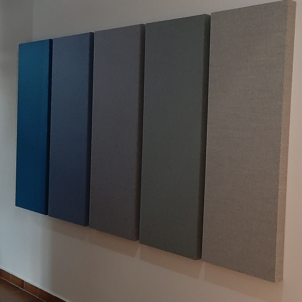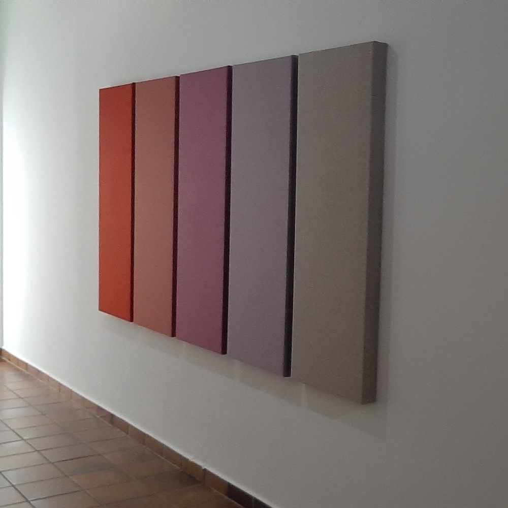 Der minimalistische Aluminiumrahmen des Wandabsorbers in einer weiteren interessanten Variante. Der Stoff wird über die Fläche und um den Rahmen herum gespannt und rückseitig mit Klett befestigt. Der Stoff wird passgenau konfektioniert um einen ordentlichen Sitz zu gewährleisten. Die schallabsorbierende Wirkung des Absorbers wird dadurch eher positiv beeinflusst. Unsere Stoffkollektionen bieten auch bei dieser Ausführung die umfangreichen Gestaltungsmöglichkeiten, wie Sie sie bei unseren Wandelementen WA 55 R mit sichtbarem Rahmen kennen.