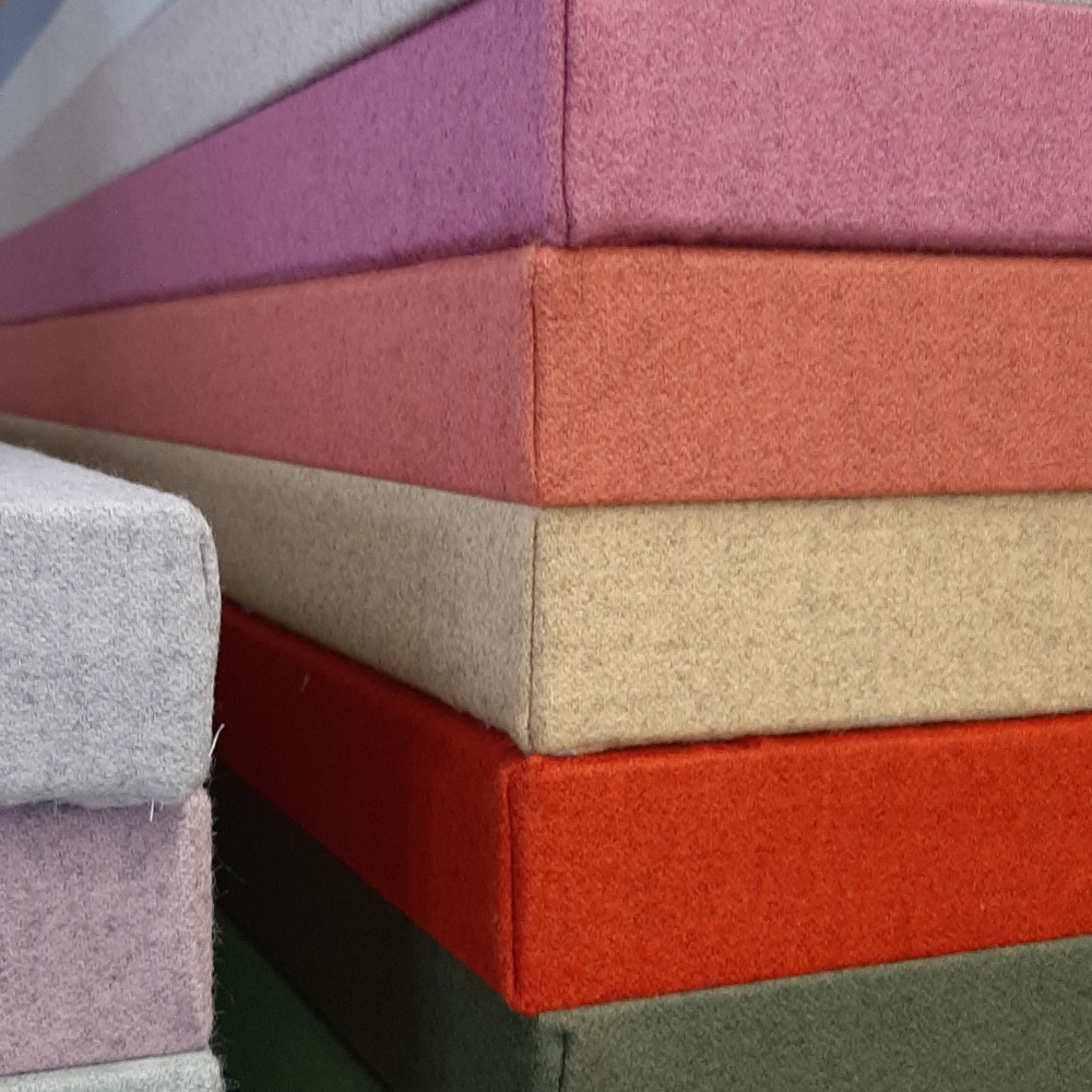 Sie möchten neue Akzente setzen? Selbstverständlich ist bei dieser Ausführung auch ein Digitaldruck möglich. Der Absorberkern besteht aus einem Akustikvlies, das wir je nach Absorptionsklasse und Ausführung des Absorbers anpassen.