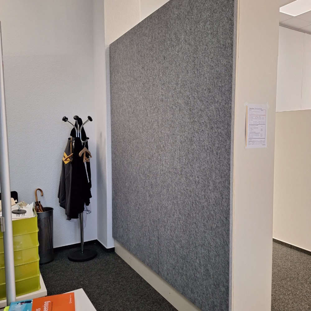 Eine einfache und effektive Lösung aus reinem Akustikvlies, die freie Flächen zu einer grossen absorbierenden Fläche umwandeln die neue moderne Akzente setzt. Die eigensteife Akustikplatte wird mit einem Klettband auf der Rückseite des Schrankes oder einer Fläche Ihrer Wahl befestigt. Das Vlies ist in Grau meliert, Weiß, Anthrazit und Schwarz lieferbar.Beschreibung: